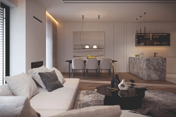 Натуральные цвета, светлые оттенки в отделке, создают атмосферу уютного пространства, гармонию с природой.